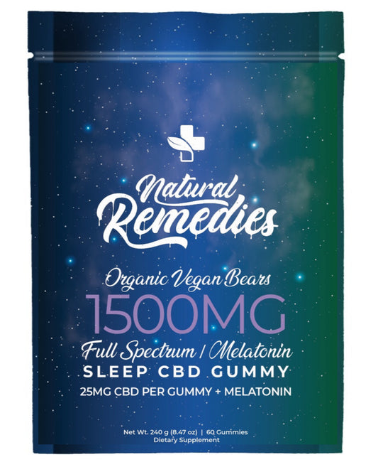 Natural Remedies 1500mg CBD + Melatonin Sleep Gummies - 25MG Per Gummy - 60 Piece Jar