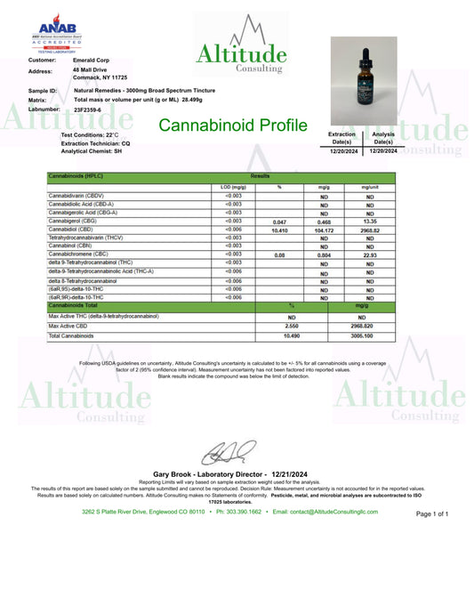 Natural Remedies 3000mg Broad Spectrum Organic CBD Tincture 30ml 0.00% THC