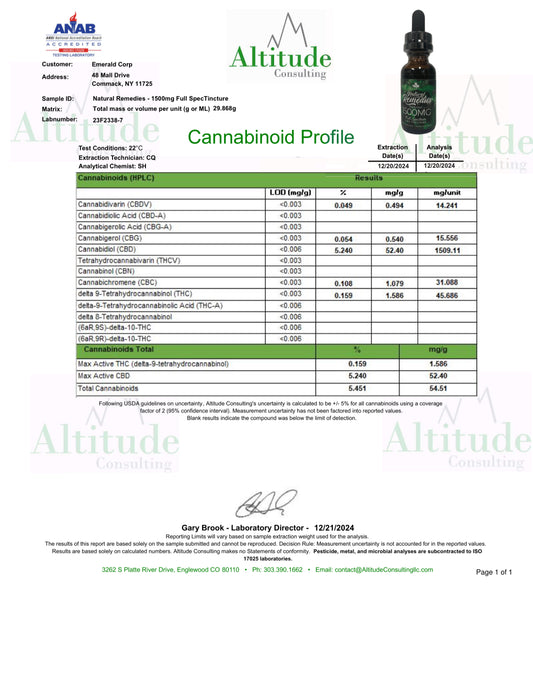 Natural Remedies 1500mg Full Spectrum Organic CBD Tincture 30ml <0.3% THC