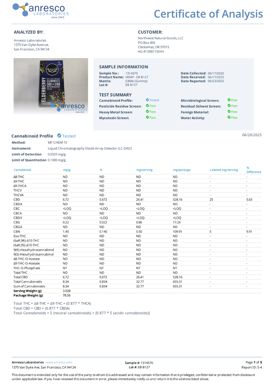 Wyld CBD + CBN Elderberry Gummies - 25mg Each THC Free Broad Spectrum - 40 Count