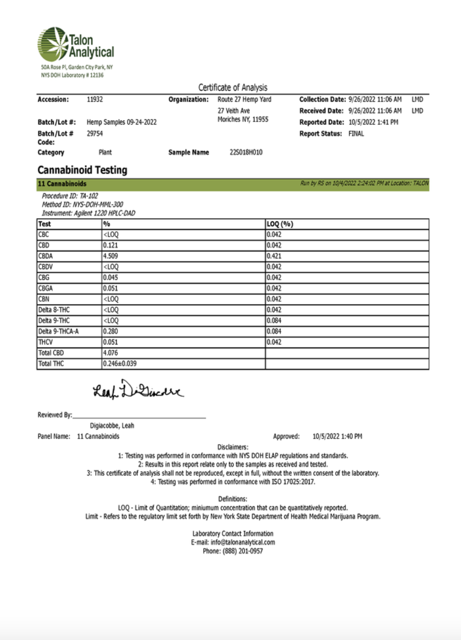 Legal in all 50 states. The Finest Quality Hemp Flower Around & Lab Tested. More Lab Reports Available Upon Request.