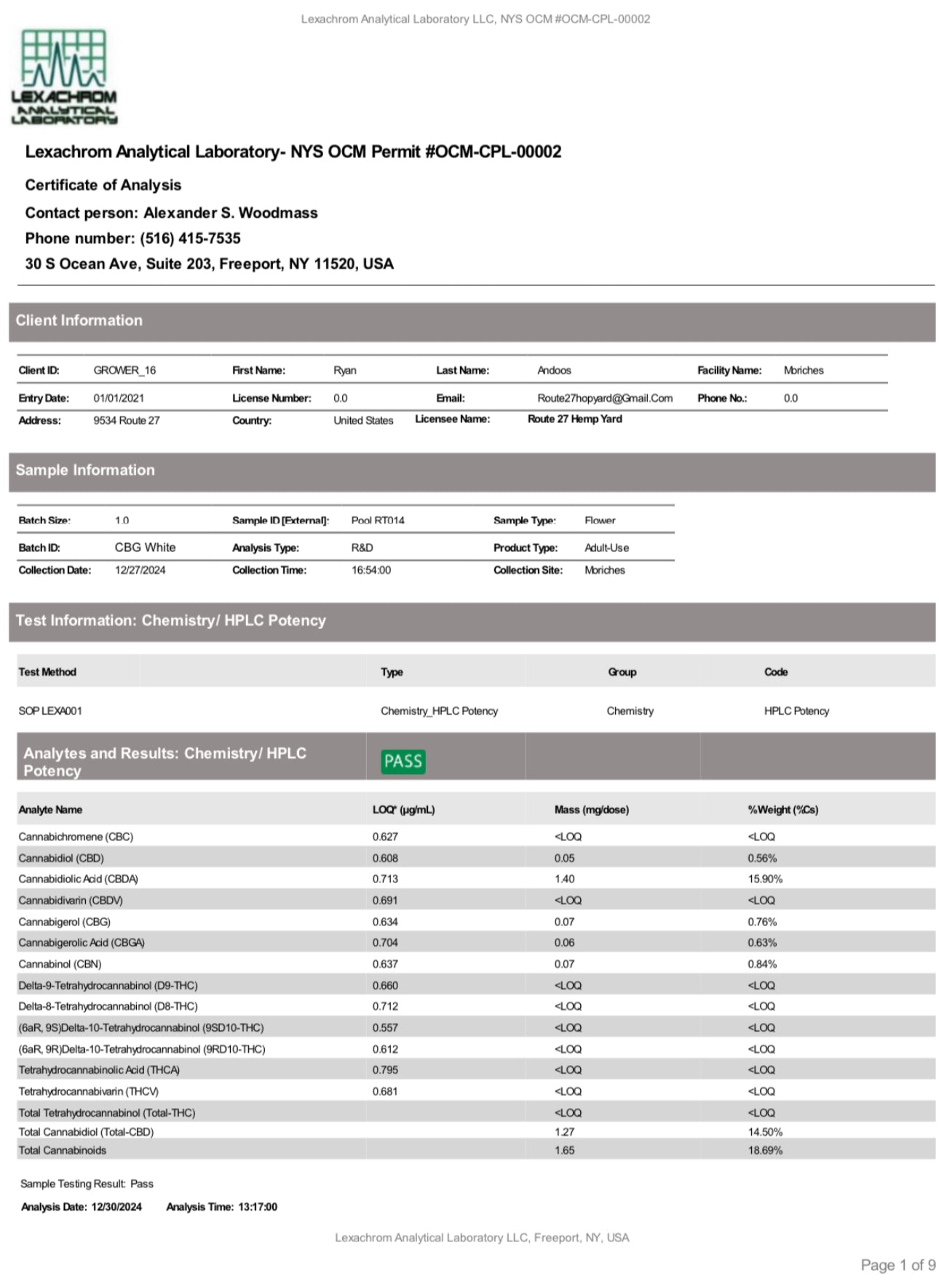 Walter White CBG/CBD Hemp Flower is an hybrid strain with white sticky, dense buds and white overall look. Loaded with CBG from its genetics, this flower is great for extra gastrointestinal issues/ IBS / bowel issues. These buds are packed with fruity earthy aroma and flavors including an intense sweet herbal sensation.